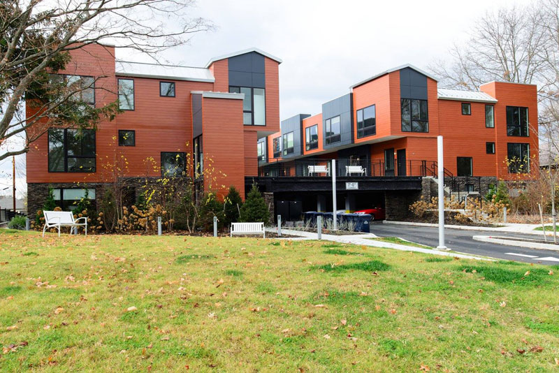PBS Modular recently completed a contemporary modular apartment building. Sanctuary Apartments consists of 3 stories and 24 units. Residents each have convenient covered parking spaces