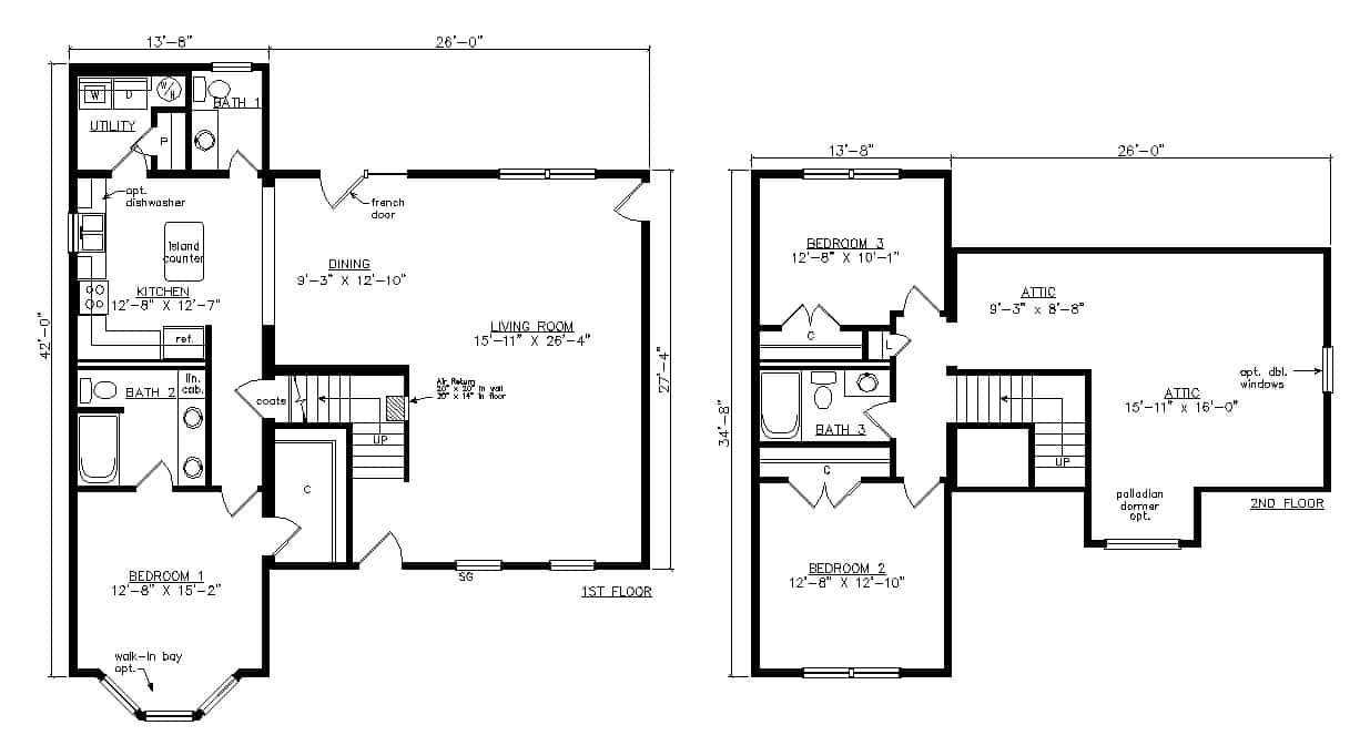 Shown with 12/12 roof pitch. Optional walk-in bay, fanlite door, onsite built porch and dormer