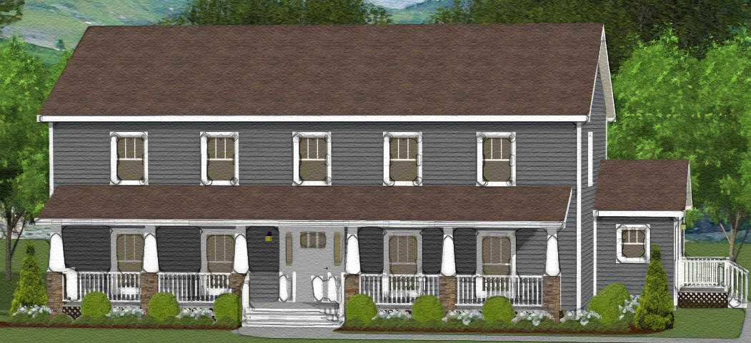 Shown with optional on site built porch, craftsman windows, craftsman door and door sidelites