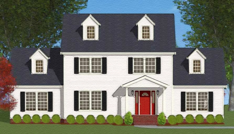 Shown with optional on site built gable porch, door sidelites, 12/12 pitch roof and dormers
