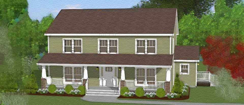 Shown with optional on site built porch, craftsman windows, craftsman door and door sidelites