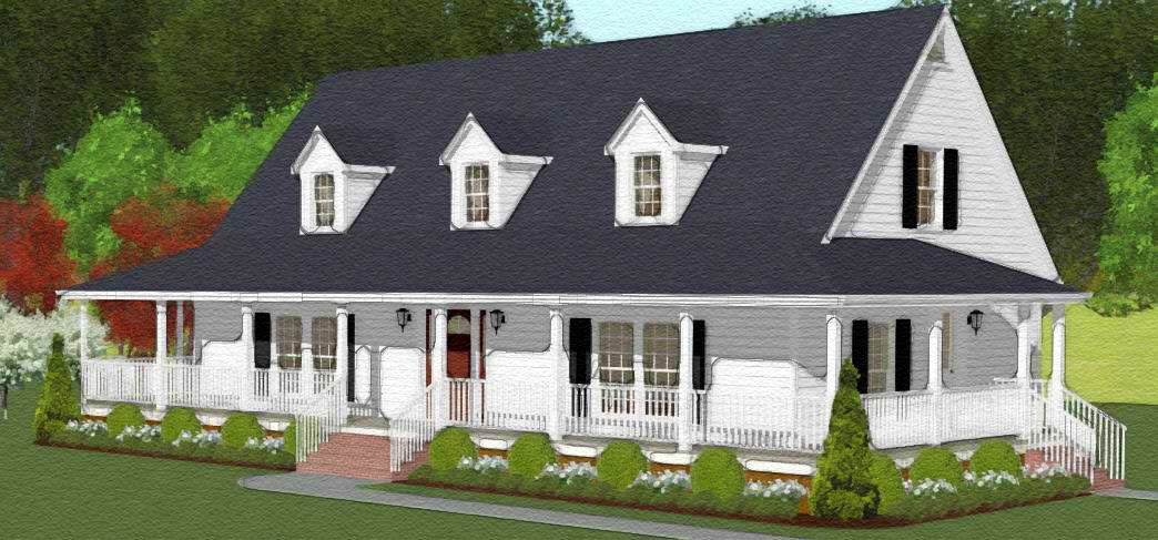 Shown with optional on site built porch, triangle gable vent, fanlite door, door sidelites and dormers